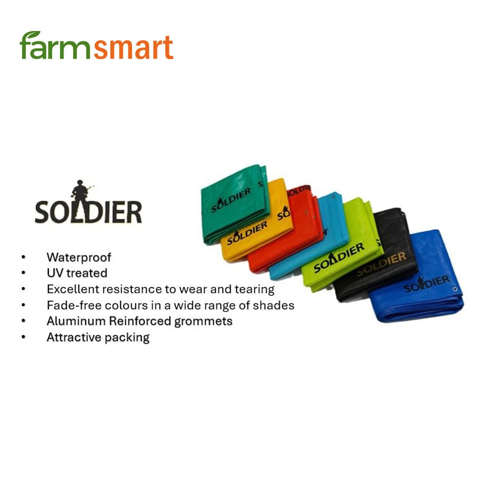 Soldier gold Tarpaulin: Soldier tarpaulin is mainly used for all the agricultural uses, and it is an ultimate solution for all your outdoor protection needs. Whether you’re shielding your agricultural yield, furniture, camping gear, or even vehicles Best selling: Soldier tarpaulin is a popular brand and one of the top best selling brands in South India UV treated: Soldier tarpaulin sheets are UV treated and gives protection from bright Sun light for a longer duration. Water proof: Soldier tarpaulins are perfect water proofing sheets, the strong 3 layer technology gives an edge to perform better across all seasons. High strength: Since these sheets made from virgin material and special process, it possesses high tear strength and hence it is more durable.